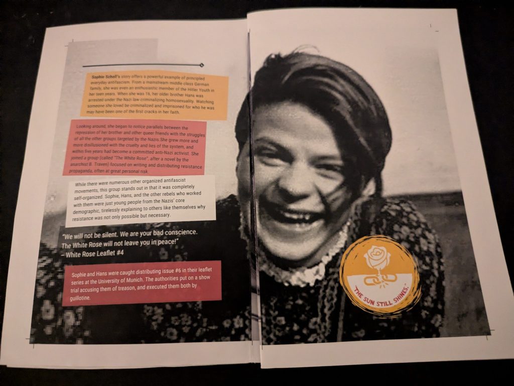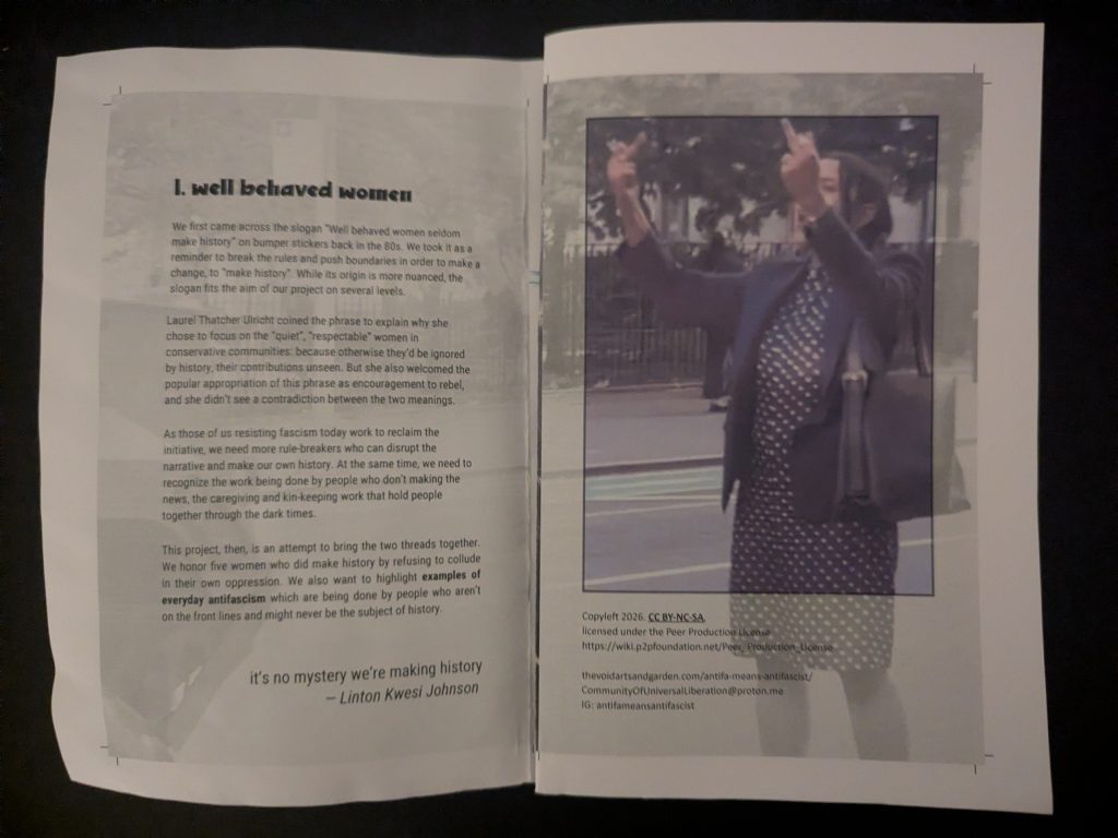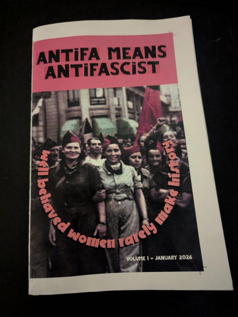 Looking over proofs of our new zine project Antifa Means Antifascist. The first issue, “Well behaved women rarely make history”, highlights antifascist women from five different generations. We’re very excited to get this out and share some inspiration from past struggles.